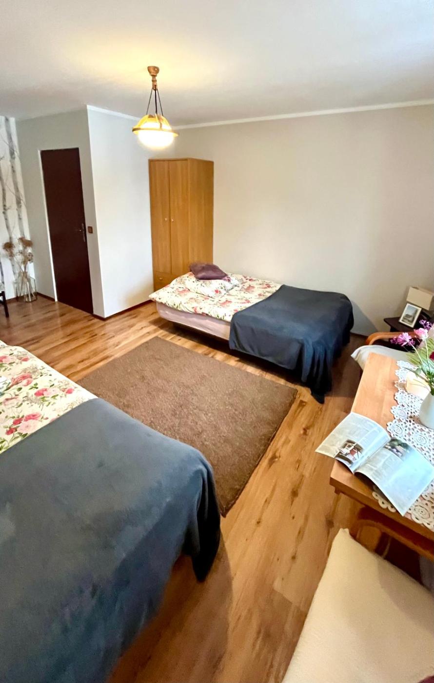 Pokój Czteroosobowy ze wspólną łazienką. The quadruple room offers a wardrobe, parquet floors, as well as a shared bathroom featuring a shower and a hairdryer. Guests will find a stovetop, a refrigerator and kitchenware in the kitchen. The quadruple room also comes with a barbecue. Boasting an outdoor dining area, this quadruple room also features a private entrance, a tea and coffee maker and a flat-screen TV with cable channels. The unit has 4 beds. Pokój Czteroosobowy - 4 osobowy. Powierzchnia pokoju ok.: 18 mkw.