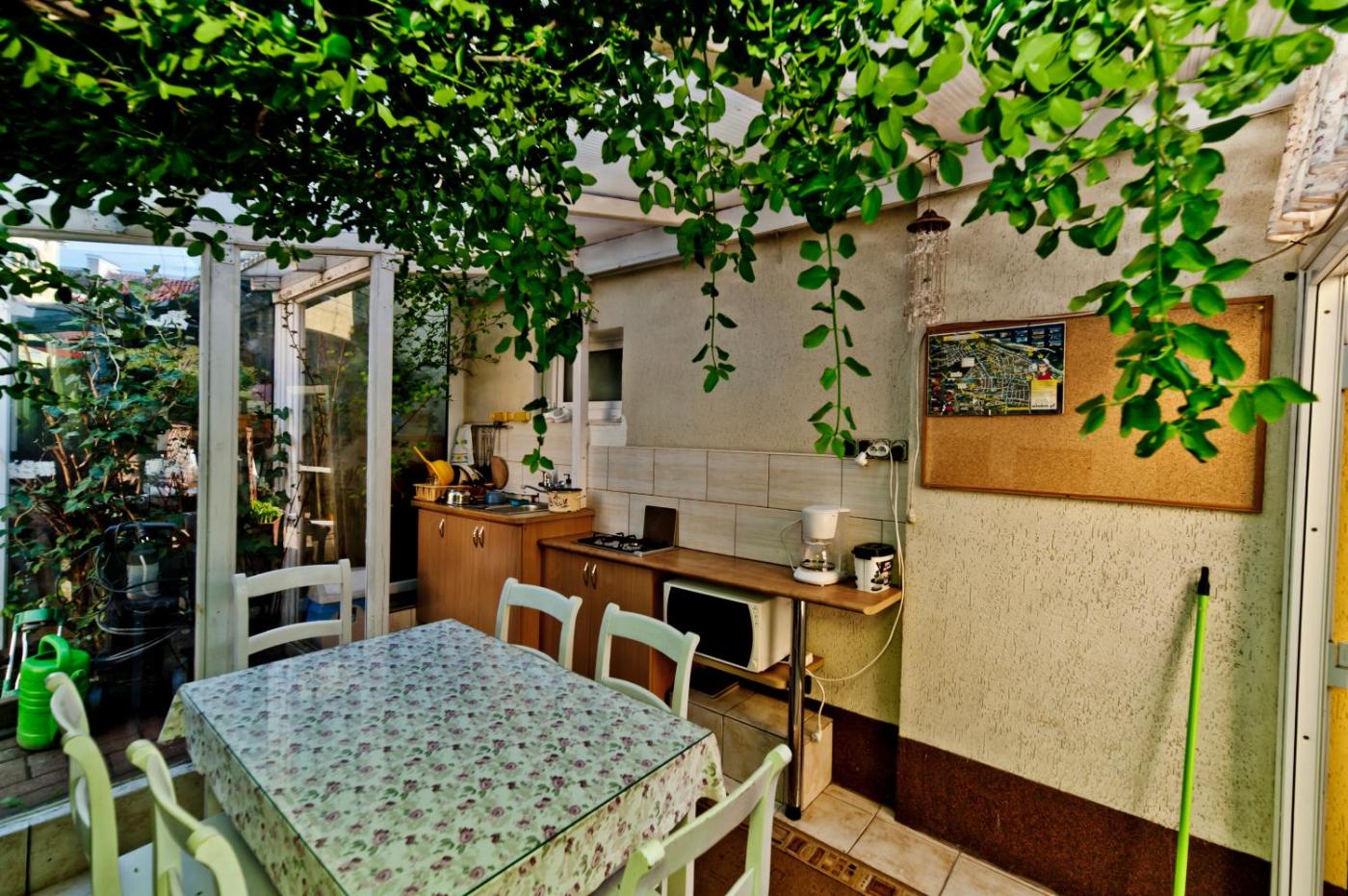 Pokój dwuosobowy. W kuchni zapewniono lodówkę, przybory kuchenne i czajnik elektryczny. Goście zakwaterowani w tym pokoju dwuosobowym mogą korzystać z grilla. Ten pokój dwuosobowy z prywatnym wejściem dysponuje częścią wypoczynkową, prywatną łazienką z prysznicem typu walk-in oraz tarasem z widokiem na ogród. W tej opcji zakwaterowania do dyspozycji gości są 2 łóżka. Pokój Dwuosobowy - 2 osobowy. Powierzchnia pokoju ok.: 16 mkw.